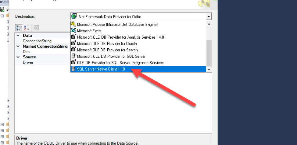 - Select the SQL Server Native Client 11.0
