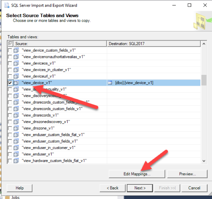 - Find the “view_device_v1” table, select it and click edit mappings